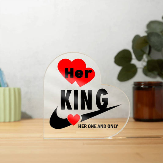 Her King Her One And Only - Acrylic Heart Plaque -Couple Gift - Gift for Her - Valentines Gift - Romantic Gift - Anniversary Gift - Birthday Gift