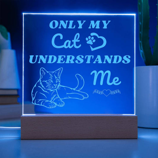 Only My Cat Understands Me - Engraved Acrylic Square Plaque LED Night Light - Pet Lovers - Valentine's Day - Gift for Pet Owners - Cat Lovers Birthday
