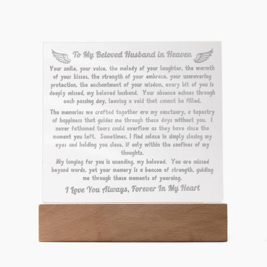To My Beloved Husband in Heaven - My Longing For You Is Unending - Engraved Acrylic Square Plaque LED Lamp Night Light - Remembrance/Memorial Gift - Loss of a Husband Gift - Sympathy Gift