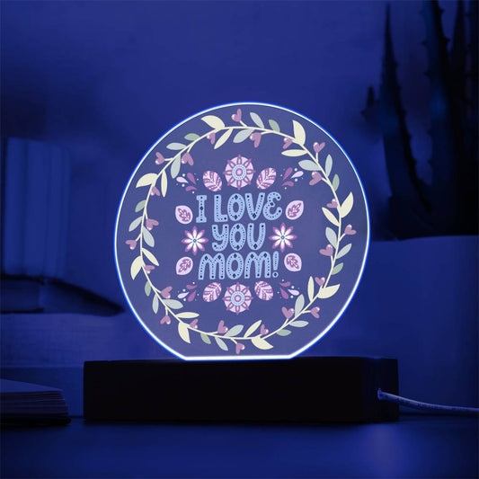 I Love You Mom - Acrylic Circle Plaque LED Night Light - Gift for Mom - Mother's Day Gift - Birthday Gift - Special Occasion Gift