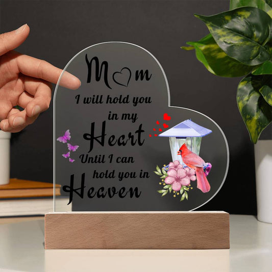 Mom I Will Hold You In My Heart Until I Can Hold You In Heaven - Acrylic Heart Plaque LED Night Light - Remembrance/Memorial Gift - Sympathy Gift - Strength - Encouragement - Inspirational Gift For Family & Friends Gift
