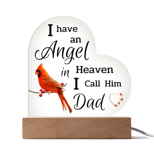 I Have An Angel In Heaven I Call Him Dad - Acrylic Heart Plaque LED Night Light - Remembrance/Memorial Gift - Sympathy Gift - Strength - Encouragement - Inspirational Gift For Family & Friends Gift