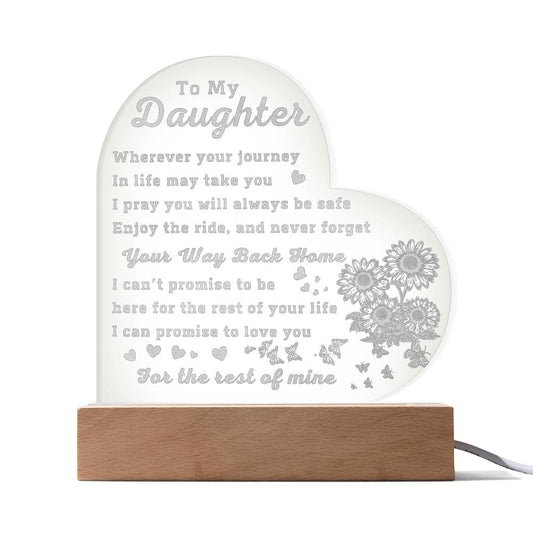 To My Daughter - Wherever Your Journey In Life May Take You - Engraved Acrylic Heart LED Night Light - Gift for Daughter - Valentine's Gift - Birthday Gift - Graduation Gift - Christmas Gift - Wedding Gift