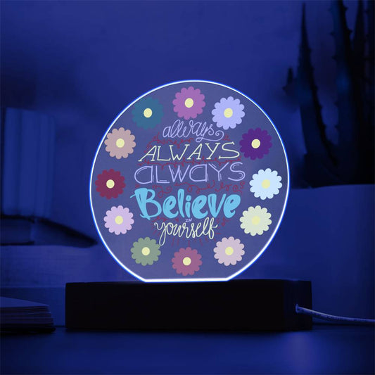 Always Always Always Believe In Yourself - Acrylic Circle Plaque LED Night Light - Gift for Her - Graduation Gift - Mother's Day Gift - Encouragement Gift - Inspirational Gift For Family & Friends Gift - Birthday Gift - Special Occasion Gift