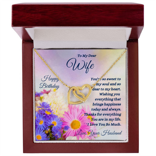 Happy Birthday from Husband - To My Dear Wife - So Sweet To My Soul - Interlocking Hearts Necklace - Wife Gift