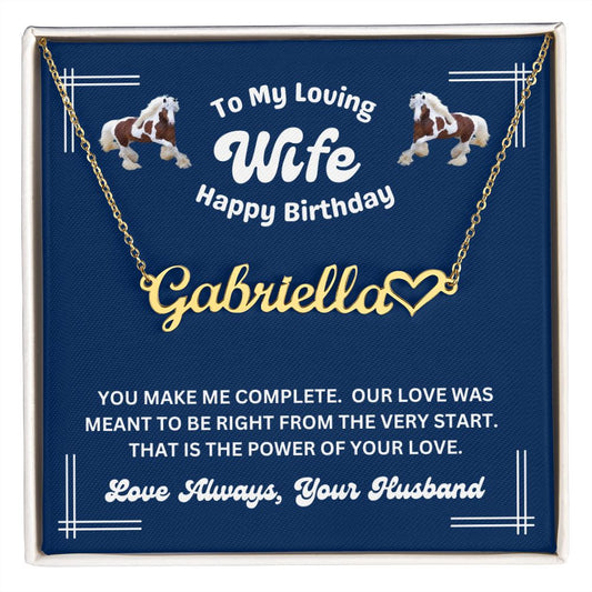 Happy Birthday from Husband - To My Loving Wife - You Make Me Complete - Personalized Heart Name Necklace - Wife Birthday Gift - Custom Name Jewelry