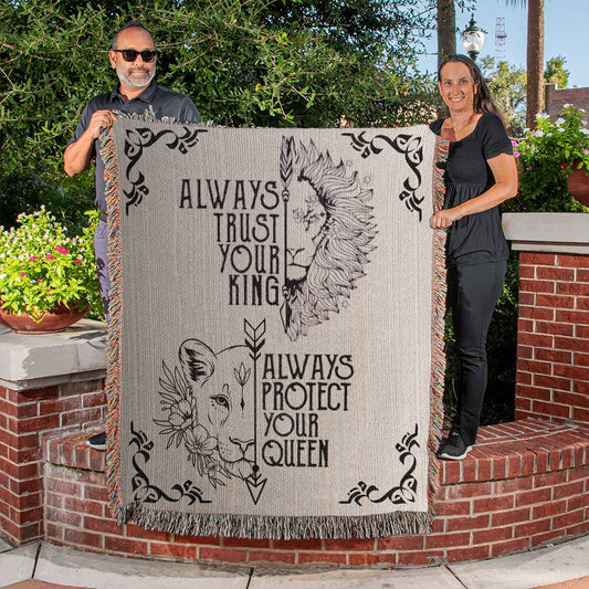 Always Trust Your King Always Protect Your Queen - Heirloom Woven Blanket - Couples Gift - Husband & Wife Gift - Wedding Gift - Romantic Gift - Anniversary Gift - Valentines Gift - Birthday Gift