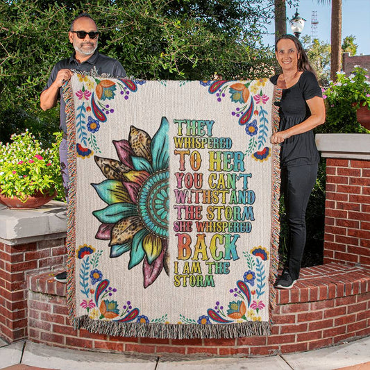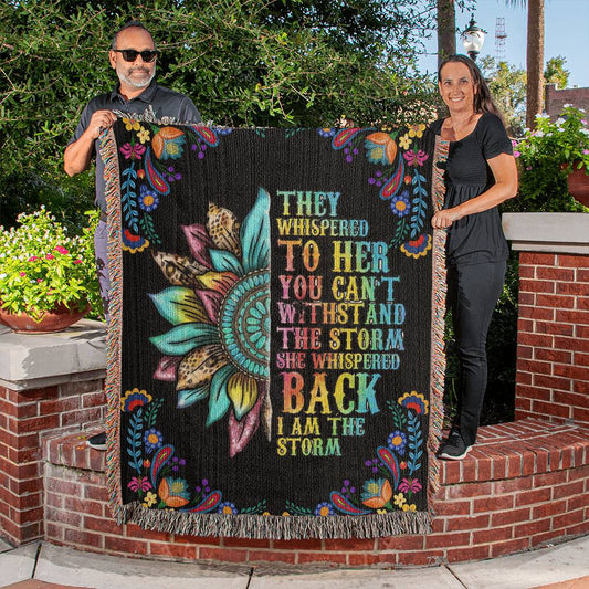 They Whispered To Her You Can't Withstand The Storm She Whispered Back I Am The Storm - Heirloom Woven Blanket - Graduation Gift - Mother's Day Gift - Encouragement Gift - Inspirational Gift For Family & Friends Gift - Birthday - Special Occasion Gift