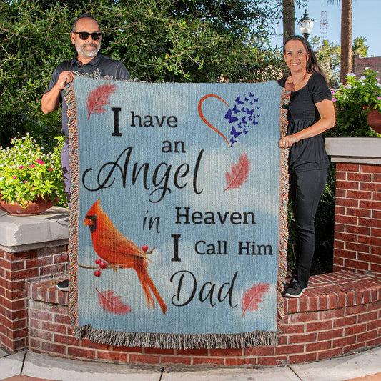I Have An Angel In Heaven I Call Him Dad -Heirloom Woven Blanket (Portrait) -Dad Remembrance Gift - Memorial Gift -Sympathy Gift - Gift For Family & Friends Gift