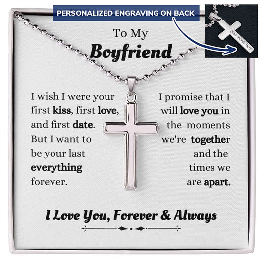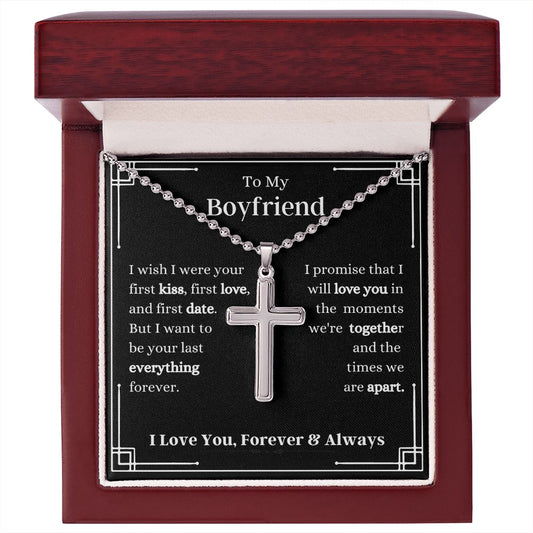 To My Boyfriend - I Wish I - Stainless Cross Necklace with Ball Chain - Boyfriend Gift - Romantic Gift for Him - Birthday Gift - Holiday Gift