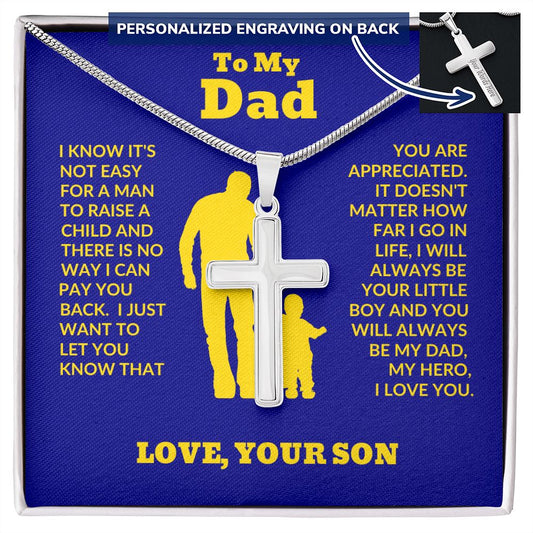 Son - To My Dad - Big Support - Personalized Cross Necklace - Son Gift - Birthday - Father's Day Gift from Mom - Grad Gift - Holiday Gift
