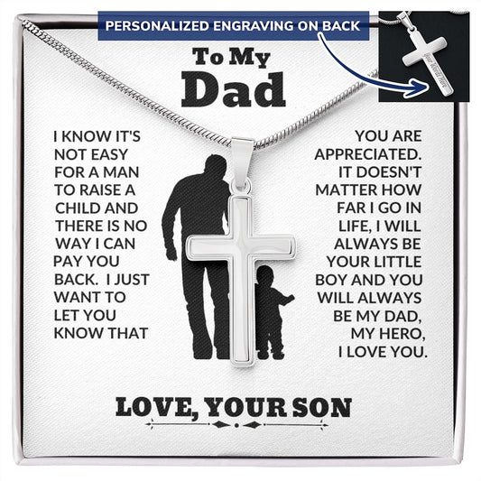 Son - To My Dad - Big Support - Personalized Cross Necklace - Dad Gift from Son - Father's Day Gift - Holiday Gift - Birthday Gift
