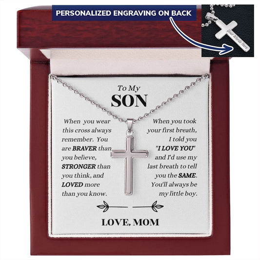 Mom - To My SON - Always Remember - Personalized Cross Necklace with Military Style Ball Chain -Son Gift from Mom - Birthday Gift - Father's Day Gift from Mom - Grad Gift - Holiday Gift