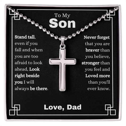 Dad - To My Son - Never Forget - Stainless Cross Necklace with Ball Chain - Son Gift - Birthday - Father's Day Gift from Dad - Grad Gift - Holiday Gift