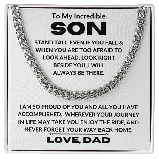 Dad - To My Incredible Son - Stand Tall - Cuban Link Chain - Son Gift - Graduation Gift - Birthday Gift - Christmas Gift