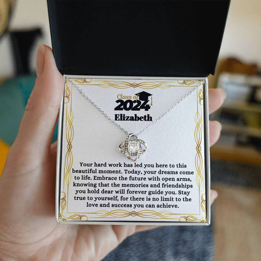 Graduation - Your Hard Work Has Led You Here - Personalize Her Name - Love Knot Necklace - Graduation Gift For Her - Necklace Gift for Grad