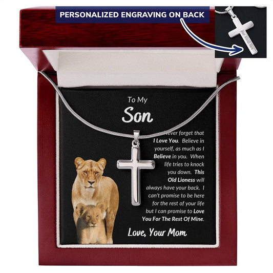 Mom - To My Son - I Love You - Personalized Cross Necklace - Son Gift from Mom - Birthday Gift - Father's Day Gift from Mom - Grad Gift - Holiday Gift