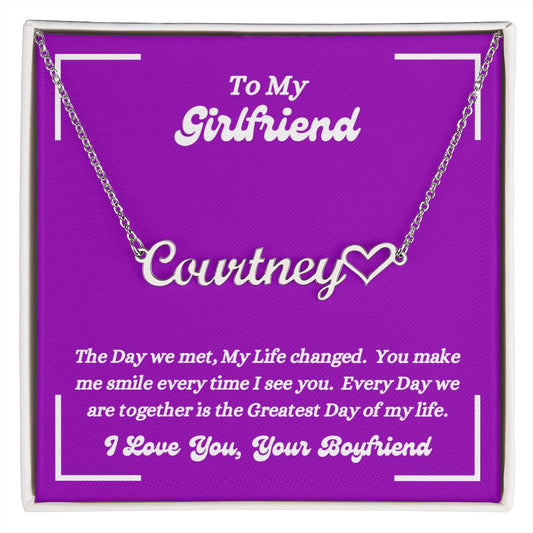 Boyfriend - To My Girlfriend - The Day We Met - Personalized Heart Name Necklace - Gift for Girlfriend - Birthday Gift - Custom Name Jewelry - Graduation Gift - Christmas Gift