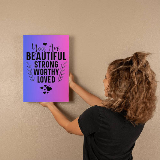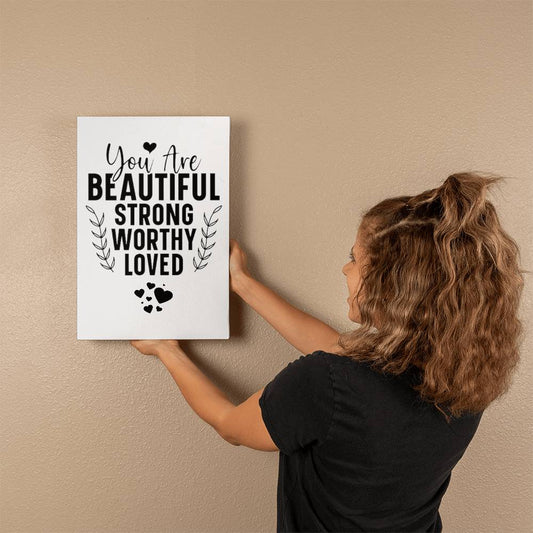 You Are BEAUTIFUL STRONG WORTHY LOVED - Gallery Wrapped Canvas (2:3) -Graduation - Mother's Day Gift - Encouragement Gift - Inspirational Gift For Family & Friends Gift - Birthday - Special Occasion Gift