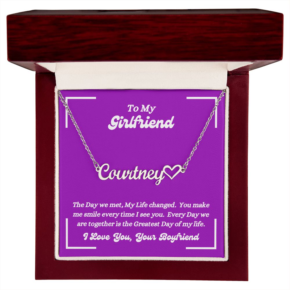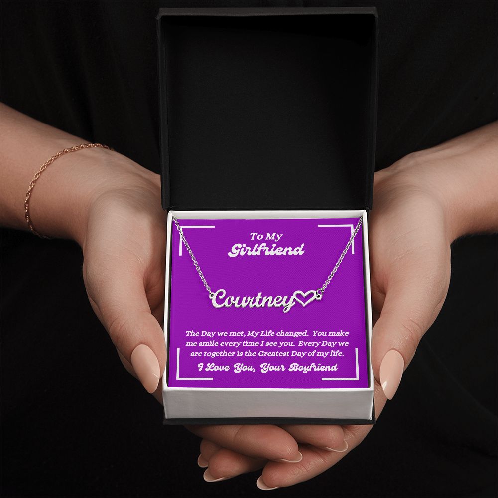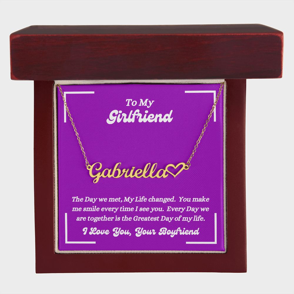 Boyfriend - To My Girlfriend - The Day We Met - Personalized Heart Name Necklace - Gift for Girlfriend - Birthday Gift - Custom Name Jewelry - Graduation Gift - Christmas Gift