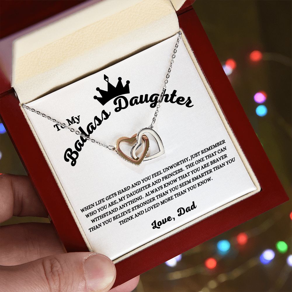 Dad - To My Badass Daughter - Who You Are - Interlocking Hearts Necklace - Daughter Gift - Birthday Gift - Christmas Gift -