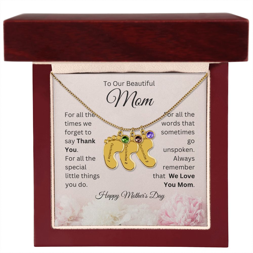 Happy Mother's Day - To Our Beautiful Mom - We Love You Mom - Engraved Baby Feet with Birthstones Necklace - Mother's Day Gift - Gift for Mom