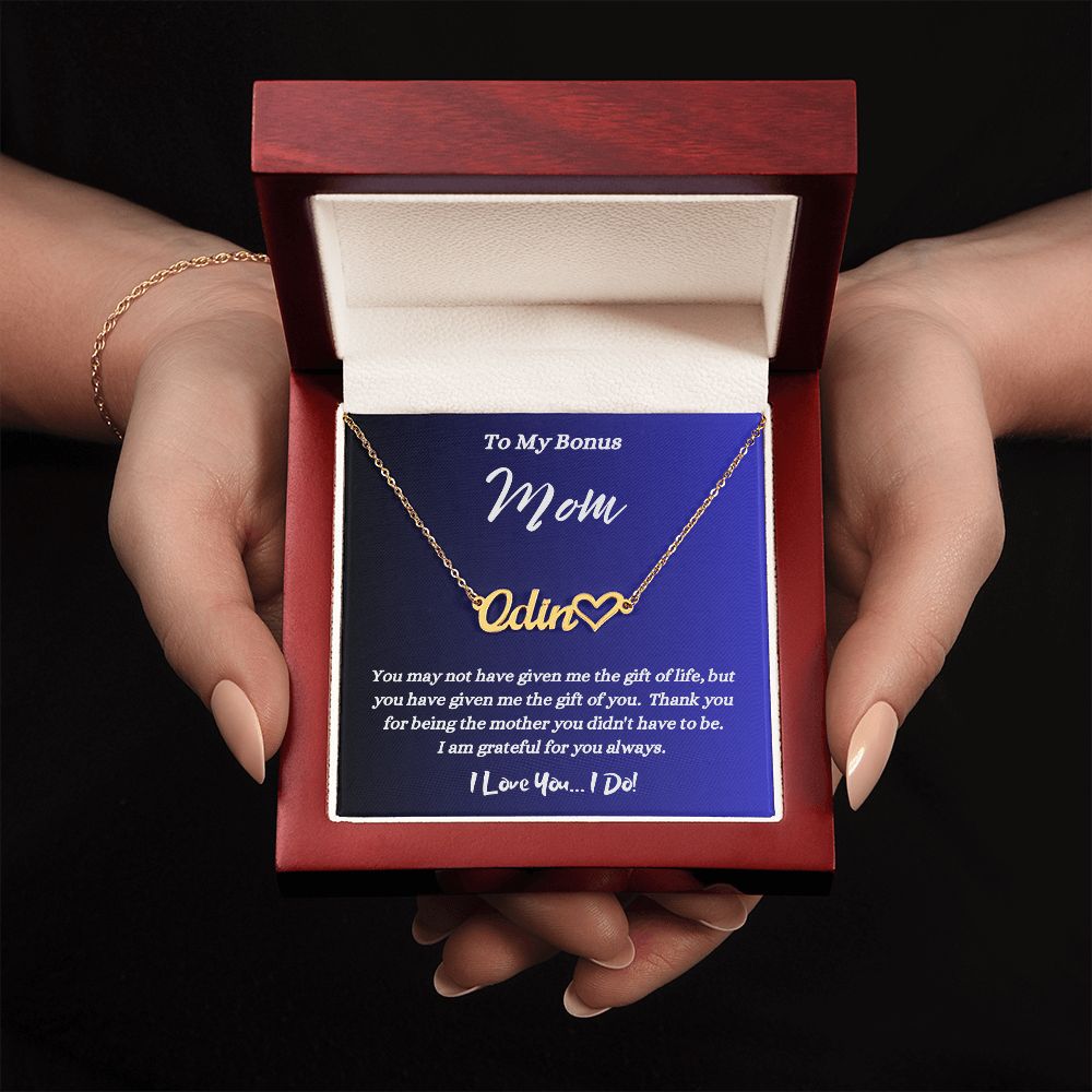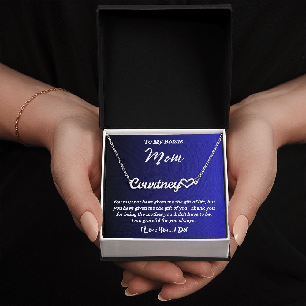 To My Bonus Mom - Given Me The Gift Of You - Personalized Heart Name Necklace - Custom Name Jewelry - Mother's Day Gift - Gift for Step Mom - Birthday Gift - Holiday's Gift - Special Occasion Gift
